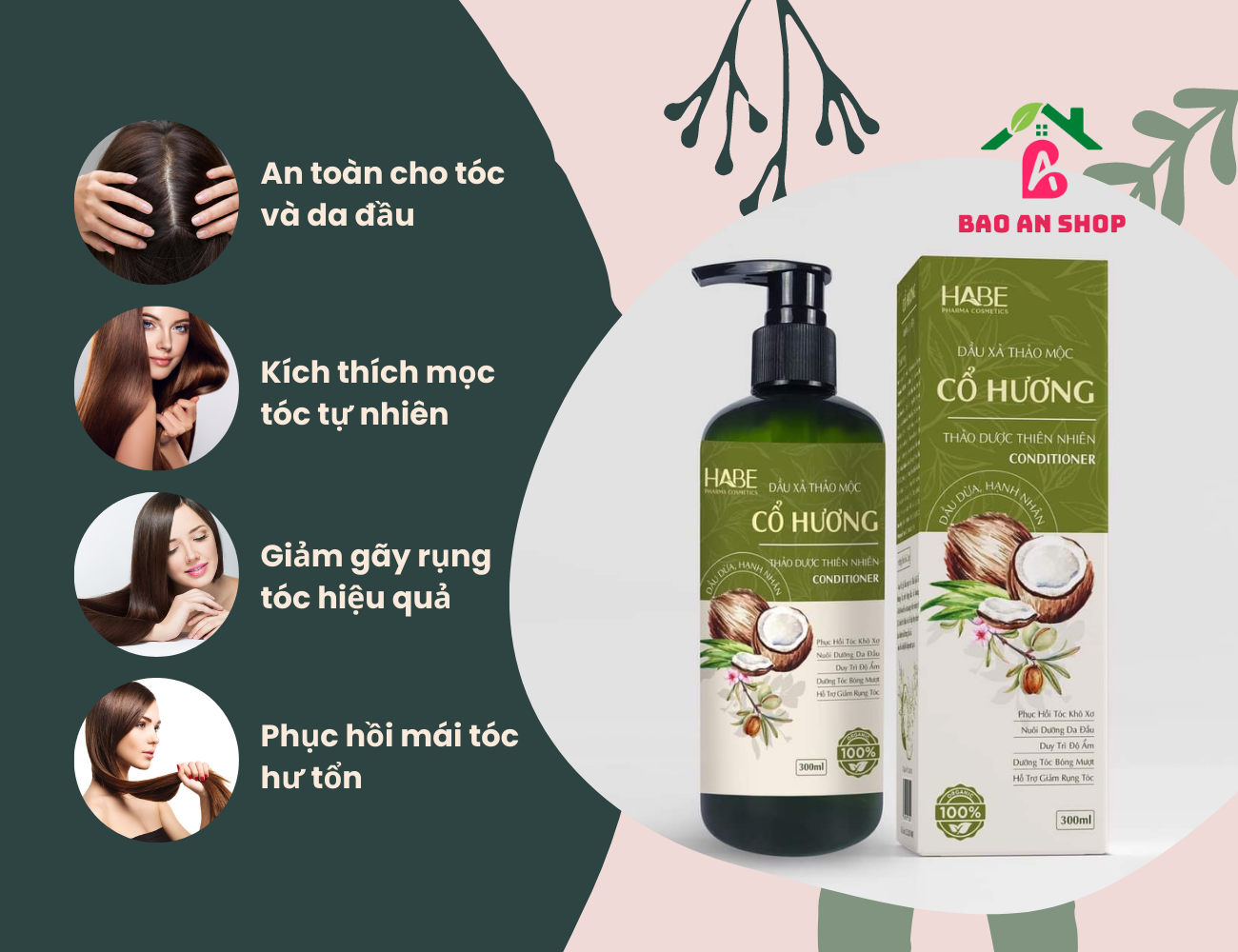 - An toàn cho tóc và da đầu: dầu xả thảo mộc Cổ Hương an toàn tuyệt đối cho mái tóc và da đầu, không gây hư tổn, không là xơ rối tóc.